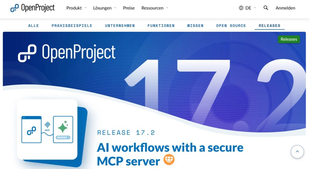 Bei der Version OpenProject 17.2 gibt es eine Weiterentwicklung die es ermöglicht, Künstliche Intelligenz (Large Language Models oder Small Language Models) über einen sicheren MCP Server in die eigenen Projekte einzubinden.