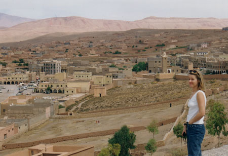 Am nächsten Morgen fuhren wir mit dem Bus nach Ouarzazate zur Besichtigung der Kasbahs von Ait Ben Haddou und Tifoultout. Die Landschaft war zwar karg, aber überwältigend. Unsere Route führte uns durch den Hohen Atlas zur Todra-Schlucht. Ziegen, die in den Bäumen saßen, und immer wieder breite Oasen säumten unseren Weg. Ein Kamelritt in die Abendsonne beendete diesen Tag.